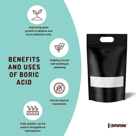 The composition of our Boric Acid is guaranteed to be more than 99.9% H3BO3 and is Fully Soluble, Hydroponics Pest Control.