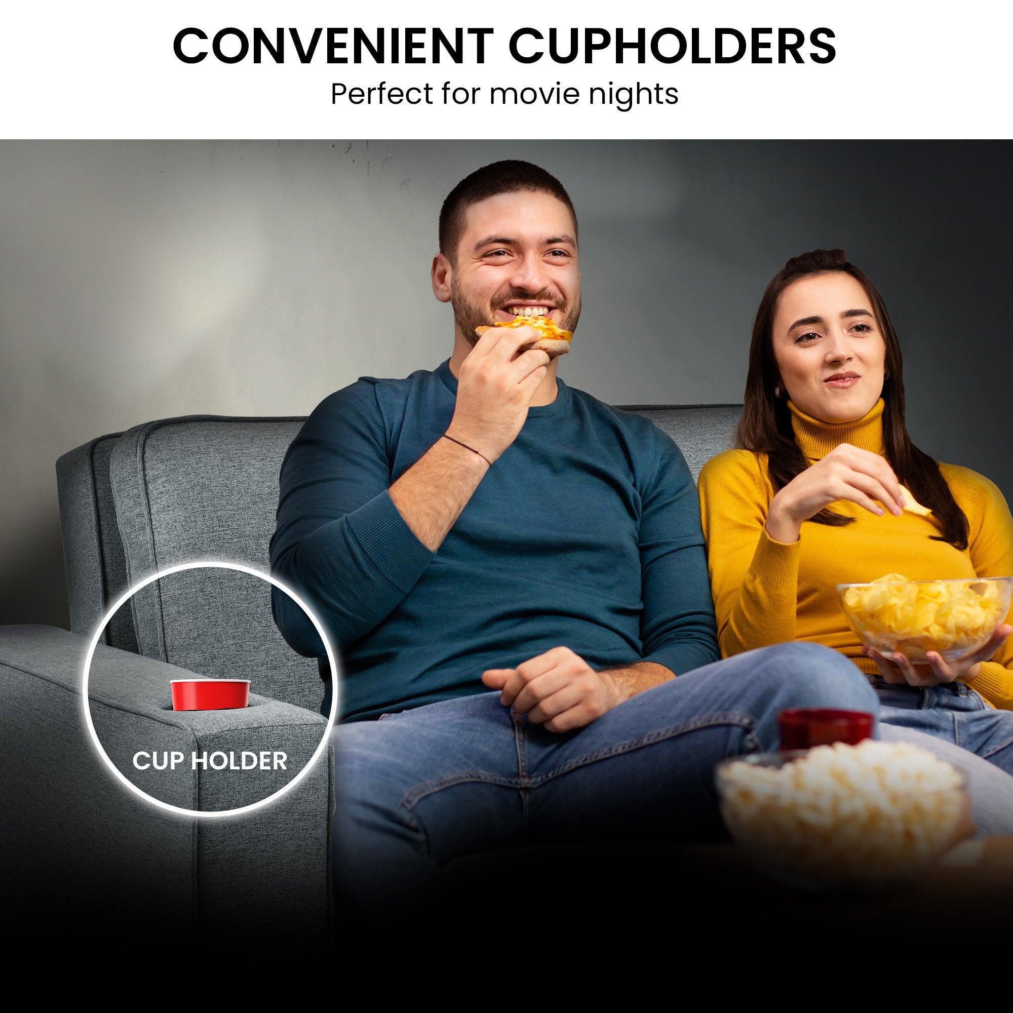 Bring the room together with this chic Scandinavian-style 2-seater sofa bed by Sarantino! Chic and elegant by design, it is crafted with linen upholstery and easily transforms into a comfortable bed, perfect for relaxing or hosting overnight guests. And guess what? It even comes with built-in cup holders for your drinks and snacks, great for movie nights!