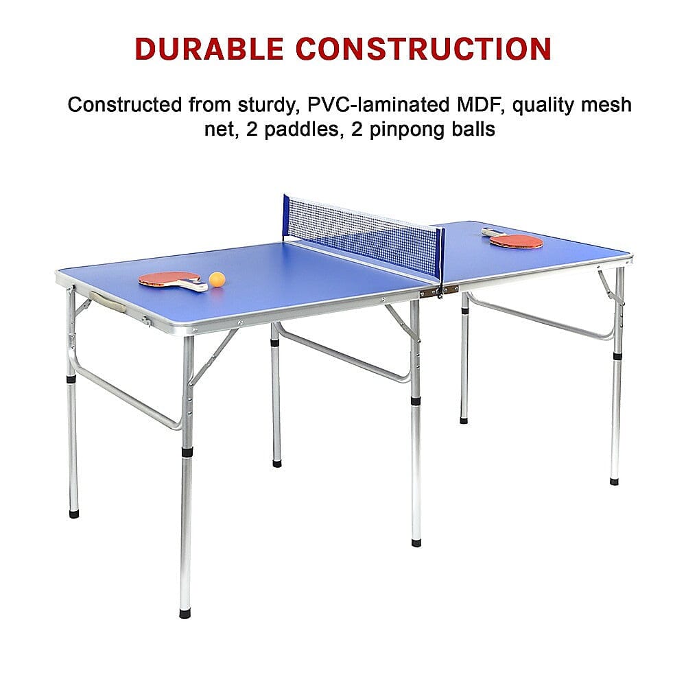 Weighing only 9kg, it's easy to carry from one room to another. You can even take it outside for family fun in the sun. Take it along with you on holiday to keep the kids busy as you plan your next adventure. Serious table tennis aficionados will enjoy its regulation height. Although it's only 5/9 the length of a regulation table, it provides just as much fun and exercise as a full-sized table, especially in small spaces. Don't let a small space hold you back from fun. Order your ping-pong set today!