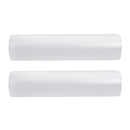 These two rolls of food vacuum sealer bags are perfect for keeping your food fresh for longer! The bags are designed to prevent spoilage by extracting all the air from inside the bag. Made from safe and odourless materials, these bags are tough and not easy to tear. The multi-layer bag design ensures maximum air extraction and is suitable for fruits, meat, cereals, vegetables, and more. The bags are compatible with most vacuum sealer machines, ensuring a strong seal and no air leakage. The diamond-shaped embossing makes them resistant to high temperatures, and they can be refrigerated and frozen. However, they cannot be heated in the microwave; only slowly heat the bags in water. The temperature range for use is -40 to 90 Celsius degrees. Reduce your food waste and keep your fridge stocked with our vacuum food sealer bags.