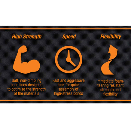- Offers a fast, aggressive tack for a quick assembly of high-stress bonds
