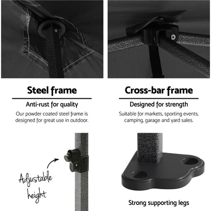 Suitable for markets, sporting events, camping, garage and yard sales, school events and trade shows
