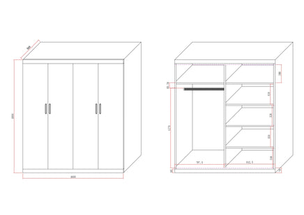 - 4-Door Wardrobe Perfect for modern bedrooms needing ample storage