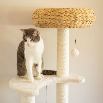 Its two separate wicker baskets give a choice of sleeping spacesýÿone above and one below. These circular beds are a great place for them to curl up after a hard day of sleeping, and offer all the benefits of a wicker basket. This means this cat tree is not only sustainable but also durable and simple to clean.
