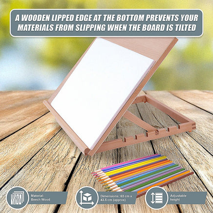 Crafted from hard-wearing Beech wood, this easel table is built to last, offering a stable and reliable surface for all your artistic endeavors.