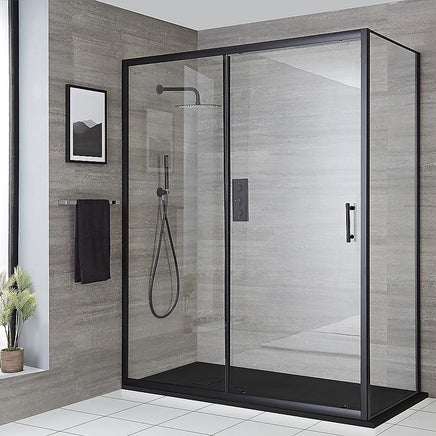 Adjustable 1800x800mm Single Door Corner Sliding Glass Shower Screen in Black