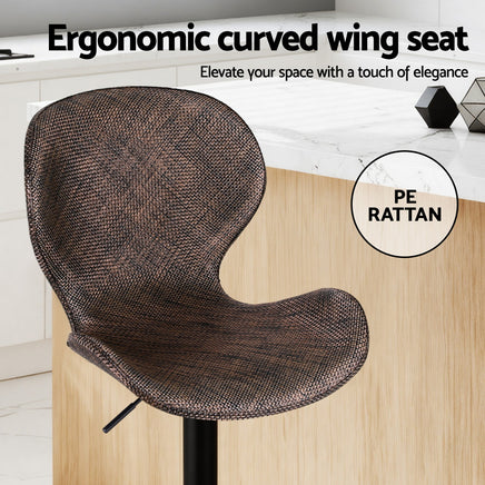 Artiss 2x Bar Stools Kitchen Swivel Gas Lift Counter Chair Wing PE Rattan Brown