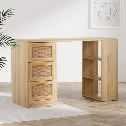 Artiss Computer Desk Drawer Shelf Home Office Study Table Rattan Oak 120CM SALE