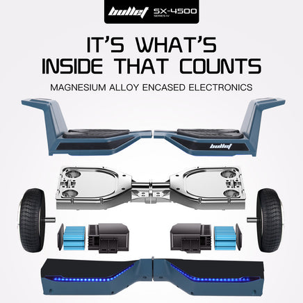 Experience a next level hoverboard with the state-of-the-art Bullet SX-4500. Its high-speed chipset reacts instantly to your bodys movements, offering highly responsive acceleration, turning, and reversing.