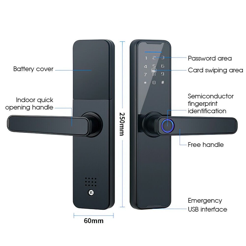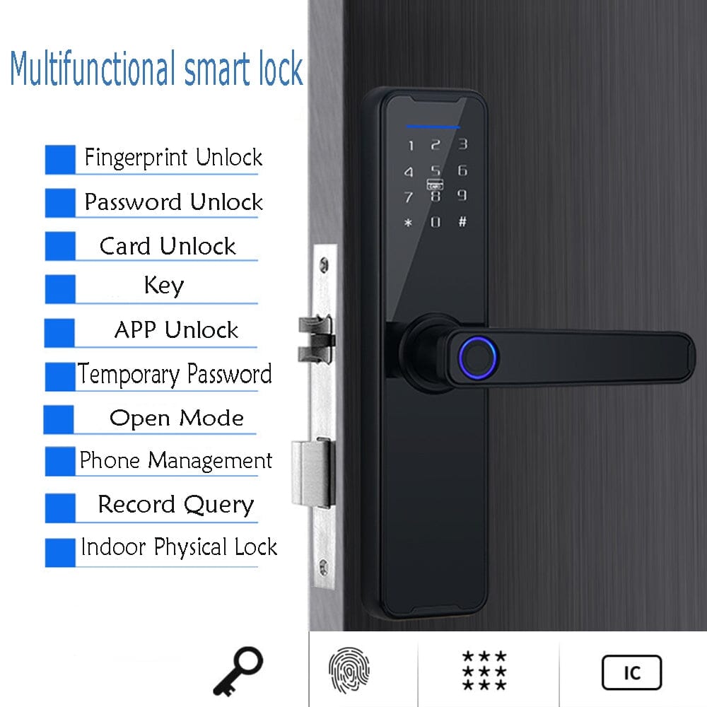 - 5 Unlocking Methods: Fingerprint, password, key, IC Card, App are enabled. It's super convenient for you and your family members to enter home.