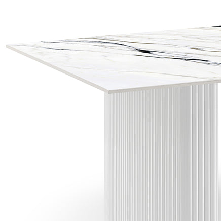 Table top is made of Sintered Stone and this is 11 mm thick. This makes the table top enough thick and resilient to hold weight.