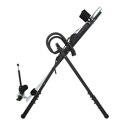 If you often suffer from back pain after a day of work, our Everfit Inversion Table may be the solution for you. Hanging upside down can help to improve flexibility, reduce nerve pressure, realign the spine, and relax tense muscles. The extra wide backrest is padded with thick high-density foam to provide you with adequate support and comfort. The inversion level is adjustable up to 180� with three pre-set locking positions. The safety belt and locking ankle clamp always keep you securely in place, the removable cushioned lumbar support provides added comfort, and the padded U-frame handles ensure that you always have a firm grip and can easily return to the upright position. The sturdy frame is constructed with industrial-strength powder-coated rust-proof steel and can support a maximum weight of up to 120kg. The height can be adjusted to accommodate all users. Best of all, the inversion table is foldable so you can easily store it away. Get a new perspective and feel the difference with an Everfit Inversion Table.