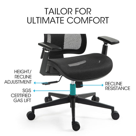 Experience the comfort and increased productivity with the Fortia Ergosi Ergonomic Mesh Office Chair. Crafted with your well-being in mind, it features high-quality, breathable mesh that keeps you cool and comfortable during long work sessions.