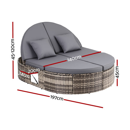 Elevate your outdoor living with the Gardeon Patio Daybed. Designed for supreme comfort and style, it comes with four backrests, each with 4 levels of adjustment, perfect for any lounging preference. Crafted with a heavy-duty metal frame and all-weather PE rattan, this sun bed is built for lasting durability. Enjoy added convenience with retractable side trays. The elegant rattan aesthetic and removable cushion covers make it a stylish, practical choice for any space. Create your perfect outdoor lounge setting with Gardeon. Note: The product is not suitable for children aged 3 and under.