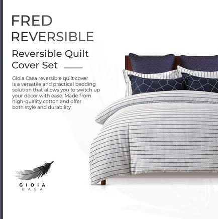 Product Description: Transform your bedroom into a stylish retreat with the 100% Cotton Reversible Printed Quilt Cover Set. This luxurious quilt cover set features a reversible design, allowing you to switch up your bedroom decor effortlessly. With vibrant colors and bold patterns, it's easy to change the look of your room by simply flipping the cover.