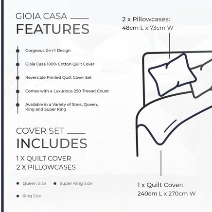 - Reversible Design: Enjoy the versatility of two distinct designs in one quilt cover set. Perfect for those who like to change their bedroom look frequently.