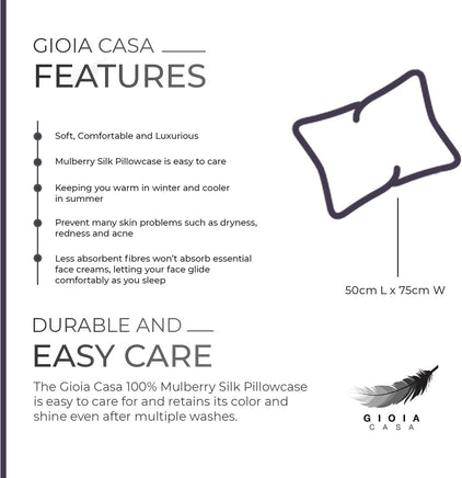 Gioia Casa Luxury Pillowcase - 100% Pure Mulberry Silk on Both Sides - Soft Anti-Wrinkle, Hypoallergenic, Washable Bed Pillowcases - Premium Pillow Cover for Hair and Skin Protection
