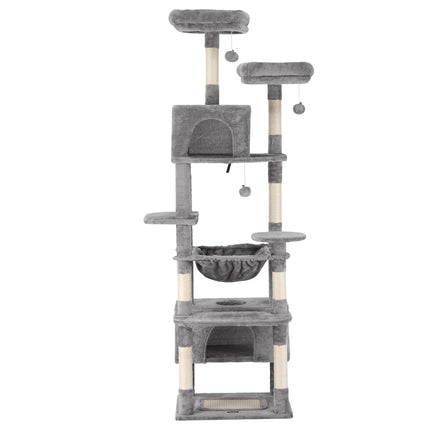 Built to satisfy the natural instincts of your precious pet, our i.Pet Cat Tree includes a host of nooks and crannies for your cats to have hours of fun scratching, hunting, climbing, jumping, hopping or simply lounging around. The tree is made from sturdy wooden construction and upholstered with a plush scent- and chemical-free velvety linen surface for extra comfort and style. The hanging and standing balls will keep your cat curious and alert. Natural woven sisal twine towers encourage your cat's scratching instincts while keeping your furniture scratch-free. Best of all, the firm base ensures that the tree remains a durable, solid-standing cat haven with total peace of mind for you. Can we hear a meow to that?