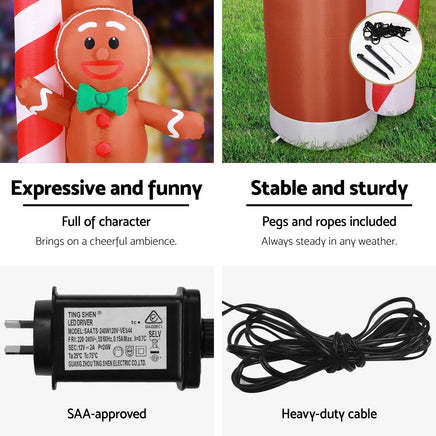 Add festive charm to your home with our Jingle Jolly Christmas Inflatable. Crafted with water-repellent and UV-resistant materials, it is perfect for indoor and outdoor use. The built-in air blower ensures effortless inflation. For quick storage, simply unzip and deflate. Pegs and ropes are also included for secure ground anchoring, bringing you peace of mind. Create a magical holiday display effortlessly with this delightful inflatable centerpiece!