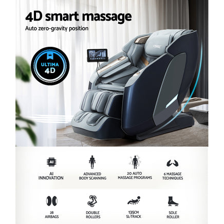 Take shelter from your busy life with our 4D Melisa Electronic Massage Chair. Crafted with the latest massaging technology, the massage chair is a therapeutic marvel from top to bottom. Using full body scanning technology, the chair will adjust to suit various body types for the perfect massage every time. It is jam-packed with premium features such as 20 pre-programmed massages, 9 targeted massage spots, 6 massage techniques, 28 full-body pressure-adjustable airbags, and a luxuriously comfortable headrest. The waist-heated massage function adds to the total pleasure of relieving your body of aches and pains, while the adjustable footrest length, airbag strength and foot roller strength will keep you perfectly relaxed. You can listen to your favourite podcast, music or guided meditation with the built-in surround sound Bluetooth speaker. The chair features an aromatherapy function that allows you to relax with your favourite scents using negative oxygen ion purification. Activate all your preferred settings via the LED touch screen or through AI voice control. Take time out of your day to feel rested and rejuvenated with the 4D Melisa Electronic Massage Chair. Get yours today.