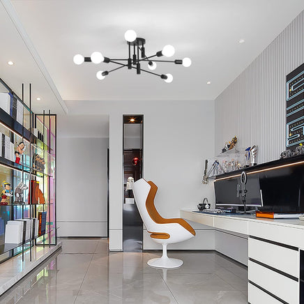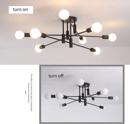 Modern Semi Flush Chandelier, 8 Light, Black SALE