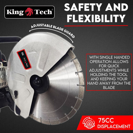 Whether you are working on a construction job, or a simple, DIY home project, you can rely on Kingtech 4.5HP Concrete Cut Off Saw to get the job done. There are two important things you should look for when it comes to choosing these kinds of power tools: Power and User’s safety. Your cut off saw should not only be reliable enough to get even the toughest cutting jobs done, but it should be safe and easy enough to use. And our product does not disappoint.