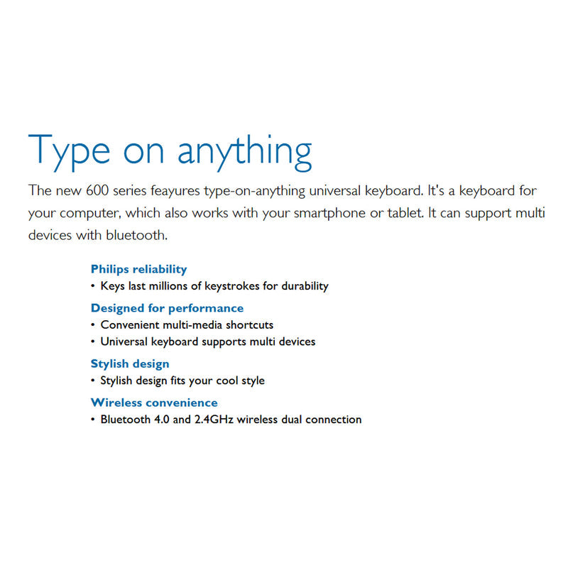 Philips Wireless Compact Keyboard BT 2.4Ghz Bluetooth Multi Device SPK6624