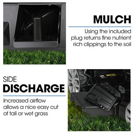 Mulch: Use the included plug to nourish your lawn with natural nutrients