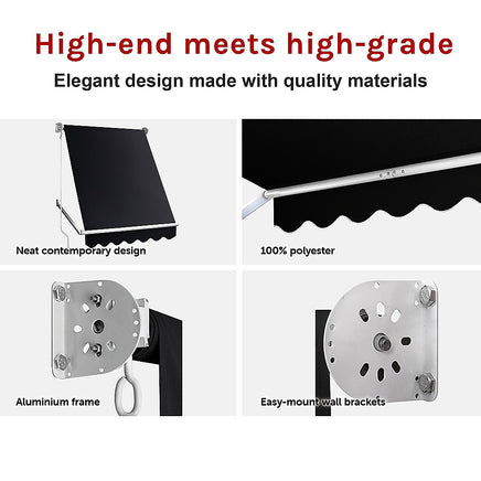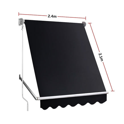Retractable Fixed Pivot Arm Window Awning Patio Garden Blinds 2.4m x 2.1m Black
