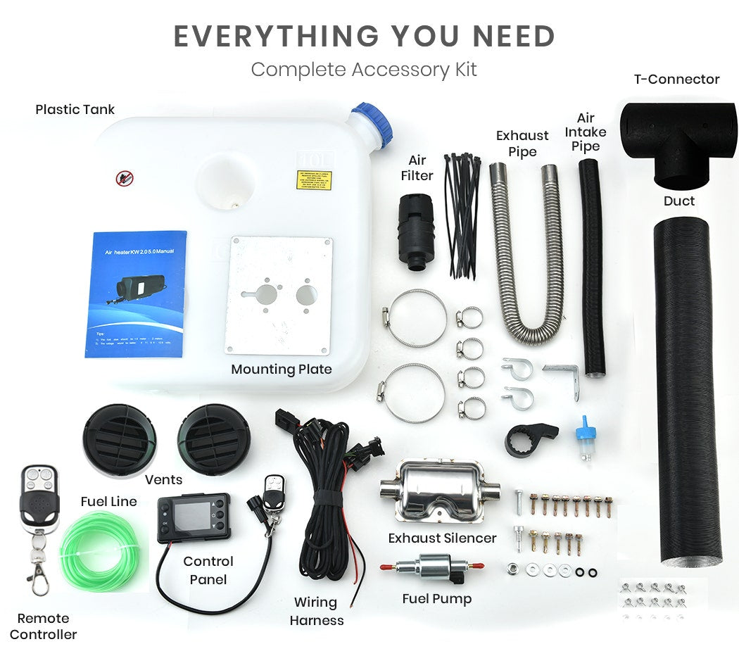 The compact design allows for easy and space-saving installation within the interior, or even under the floor of vehicles. The Thermomate Diesel Heater comes complete with all accessories you need, making it possible for anyone handy to install. Make the smart investment in your comfort and trust Thermomate for your portable heating needs.