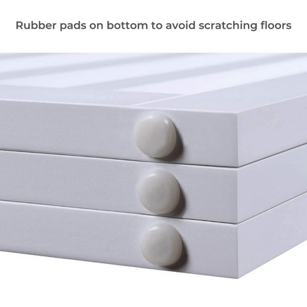 • Skid-resistant pads help keep the gate from sliding across tile and wood floors