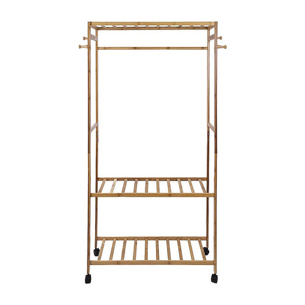Bring natural style and smart storage to your home with this 3-Tier Bamboo Clothes Rack with Shelves, Hooks Wheels. Crafted from solid eco-friendly bamboo, this garment stand offers a fresh, minimalist look while delivering sturdy, functional organization for your clothing, shoes, bags, and accessories. Featuring a hanging rod, side hooks, and 3 spacious shelves, it's perfect for creating a clean, tidy space in bedrooms, entryways, laundry rooms, or retail environments.