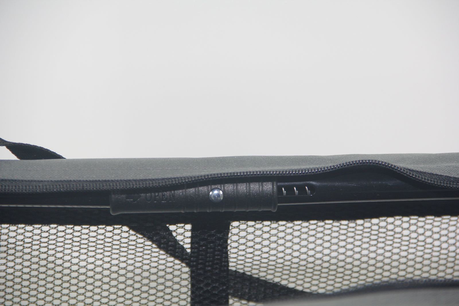 Our Dog Crate is made of 600D polyester giving higher durability. The design features mesh windows in every panel delivering better ventilation and a comfortable floor mat. The accessory bag on the side provides handy storage of accessories.