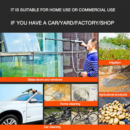 1. The portable pressure washer has 3 different nozzle patterns: 0 degree, 20 degree, 40 degree, diagonal and shower, feel free to turn the nozzle to suit your needs to adjust a mode, which will save a lot of water. In addition, we also provide a nozzle with detergent container(approx.400ml), which can be used for daily cleaning. Fast foaming, fine and uniform foam, easy to wash the car.