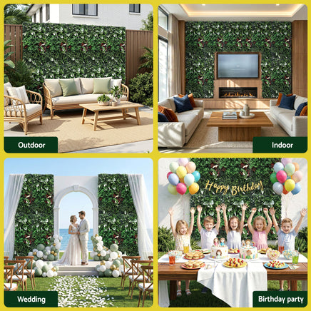 Bring timeless elegance to your space with Gardeon's 3D Artificial Greenery Wall Panel. Made from premium UV-resistant polyethylene, it maintains its vibrant green hue year-round—indoors or outdoors—without ever fading or weathering. Designed for effortless style, this maintenance-free solution requires no watering, trimming, or sunlight. Designed for effortless installation—transform walls, fences, railings, or event backdrops in minutes. Safe for homes with children and pets, and versatile enough for both residential and commercial use.Choose Gardeon for lush, lasting greenery that stays perfectly vibrant, season after season.