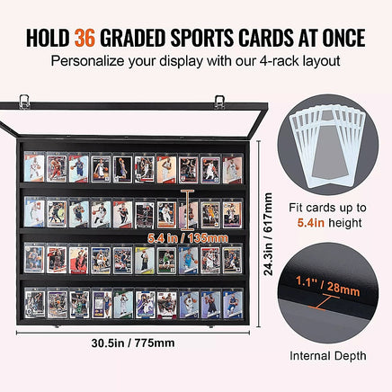 Show off your prized sports card collection with our high-quality, UV-resistant display case! Crafted with a sleek matte black wood frame and crystal-clear PC glass panels, this case provides exceptional clarity, protection, and durability. Designed to fit up to 36 graded cards, it ensures your collectibles remain secure, vibrant, and well-preserved for years to come.