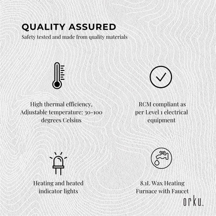 This wax melting furnace is an ideal addition to your candle making operation. With an 8L capacity and adjustable temperature gauge from 30-100 degrees celsius, it can be used to melt all kinds of candle making waxes such as soy, paraffin, bees, hard, beads, and more.