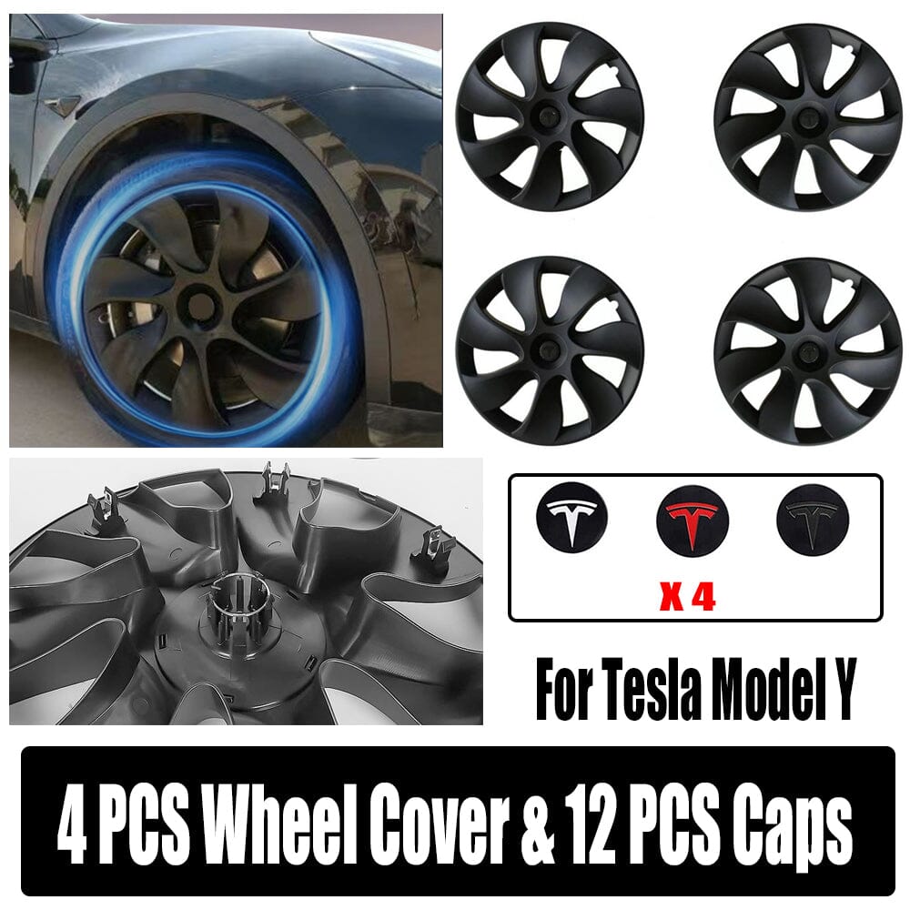 19" Model Y Hubcap: Model Y hub caps are only suitable for tesla model Y with 19" wheels. Turbine design can effectively reduce wind resistance, and makes your car look cooler and more unique.