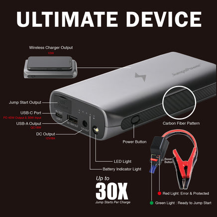 - Up to 30x Jump Starts - Reliable and long-lasting battery performance.