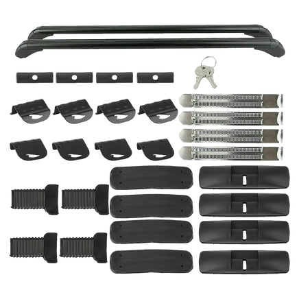 Featuring a rubber strip for added grip and an elliptical shape to minimize wind resistance, these bars prioritize both functionality and aerodynamics. The lockable anti-theft design with two locks per bar, complete with keys, ensures security. Metal brackets that clamp under the door recess, offering two clamp types, enhance stability. The T-slot channel facilitates easy installation, providing increased strength and reduced air resistance. The lightweight and aerodynamic profile effectively diminishes drag and wind noise. Ratchet tensioners allow for straightforward adjustment, but it is crucial to ensure the bars are securely fitted before driving. These bars are suitable for 4 or 5-door cars exclusively, excluding 3-door cars, vans, or large 4x4s.