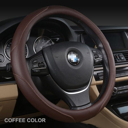 Universal Luxury Car 37-38cm Steering Wheel Cover PU Leather Non-slip Breathable (Brown) SALE
