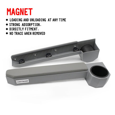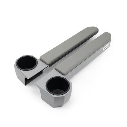 These arm rest cups holders fit the 70 series Toyota Land-cruiser, they accommodate both large and small diameter cups/bottles snugly with a removable rubber seal.