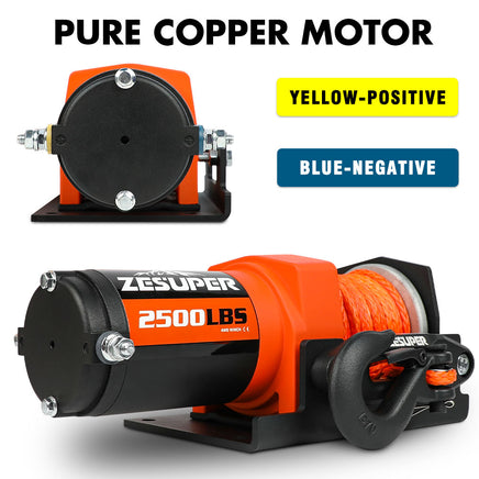 ZESUPER 12V Electric Winch 2500lbs Synthetic Rope Wireless Remote ATV UTV BOAT