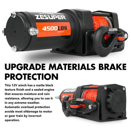 ZESUPER 4500LB Electric Winch 12V Wireless Portable ATV UTV Boat Trailer