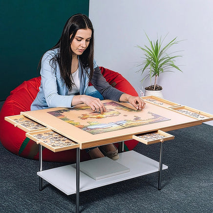 The table is built with six storage drawers to keep pieces neatly organised by colour or shape, while the protective puzzle cover secures your work-in-progress, keeping it safe from spills, dust, and accidental bumps. Compact yet sturdy, this wooden puzzle table is ideal for any room and easily portable thanks to its smart, space-saving design.