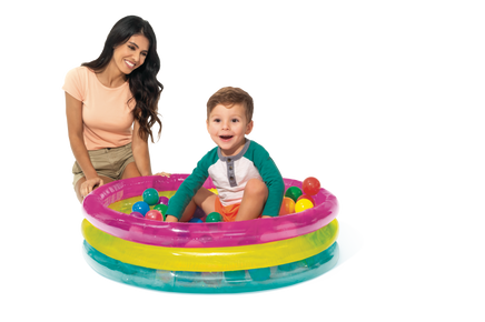 Your little ones will have a great time playing in their very own Intex Classic 3-Ring Baby Ball Pit. Have fun tossing the fifty plastic play balls around this colorful ball pit.