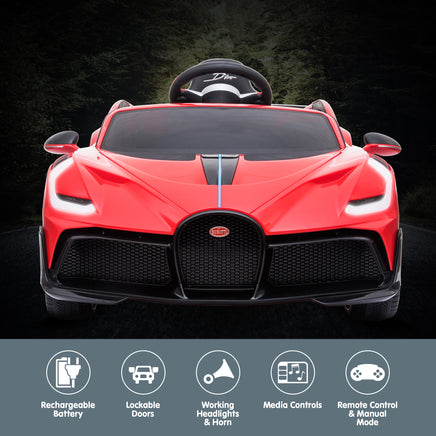 Embark on luxurious joyrides with the Bugatti Divo Electric Ride On Car! Licensed by Bugatti, this miniature marvel boasts a range of features. Its 4-wheel suspension system ensures a smooth, steady ride for all your childs adventures.