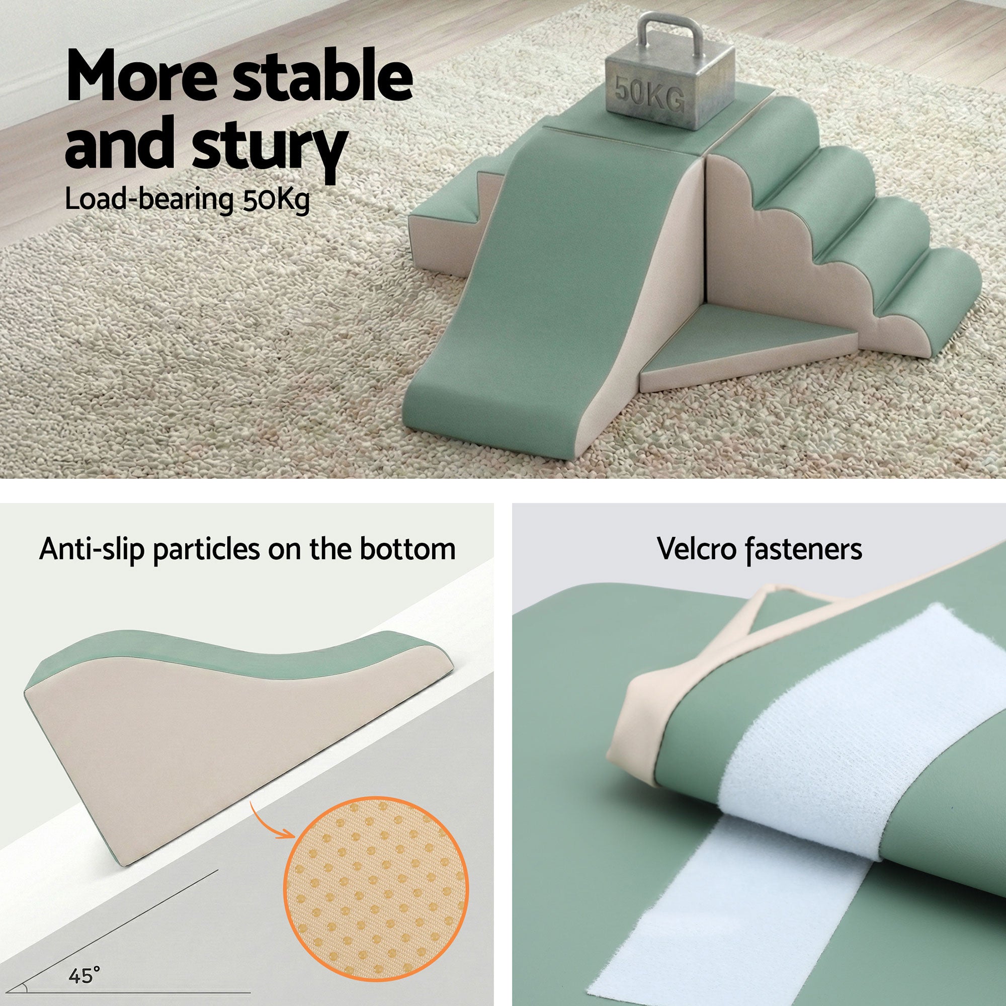 Encourage safe, active play at home with this premium climbing and slide set. Built with a sturdy PU+PE core and anti-slip particles, it ensures maximum stability while boosting motor skills and balance. The fully detachable pieces connect securely via velcro fasteners, sparking endless creativity. Whether climbing or sliding, this durable and easy-to-clean set provides a fun developmental playground that fits perfectly in any nursery or living room for endless indoor fun.