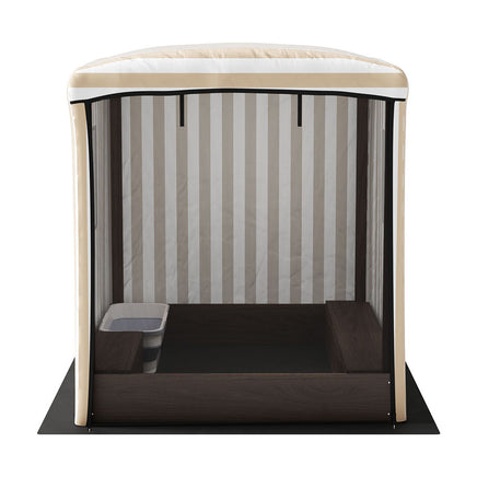 Enjoy a beach in your own backyard with the Keezi Canopy Sandpit. Our sandpit promises hours of fun in the sand for you and your kids. Our sandpits are made with solid treated timber for protection against wood rot and insect damage in addition to its durable and sturdy construction. The full coverage canopy is water-resistant and UV-resistant to keep your child dry and cool in any weather, with a roll-up door and mesh windows for that extra breeze on hot days. With enough room for 3 to 4 kids, it's also a good rallying place to have some awesome outdoor fun with friends or family. Includes a nylon ground sheet to fully protect your garden and floors and prevent sand contamination, and a storage basin to hold toys and other essentials. Best of all, the sandpit is EN71 Safety of Toys certified for your peace of mind. Easy to maintain and a joy to own, the Keezi Canopy Sandpit is one cool place to enjoy the sun, sand and shade in your garden for the family.