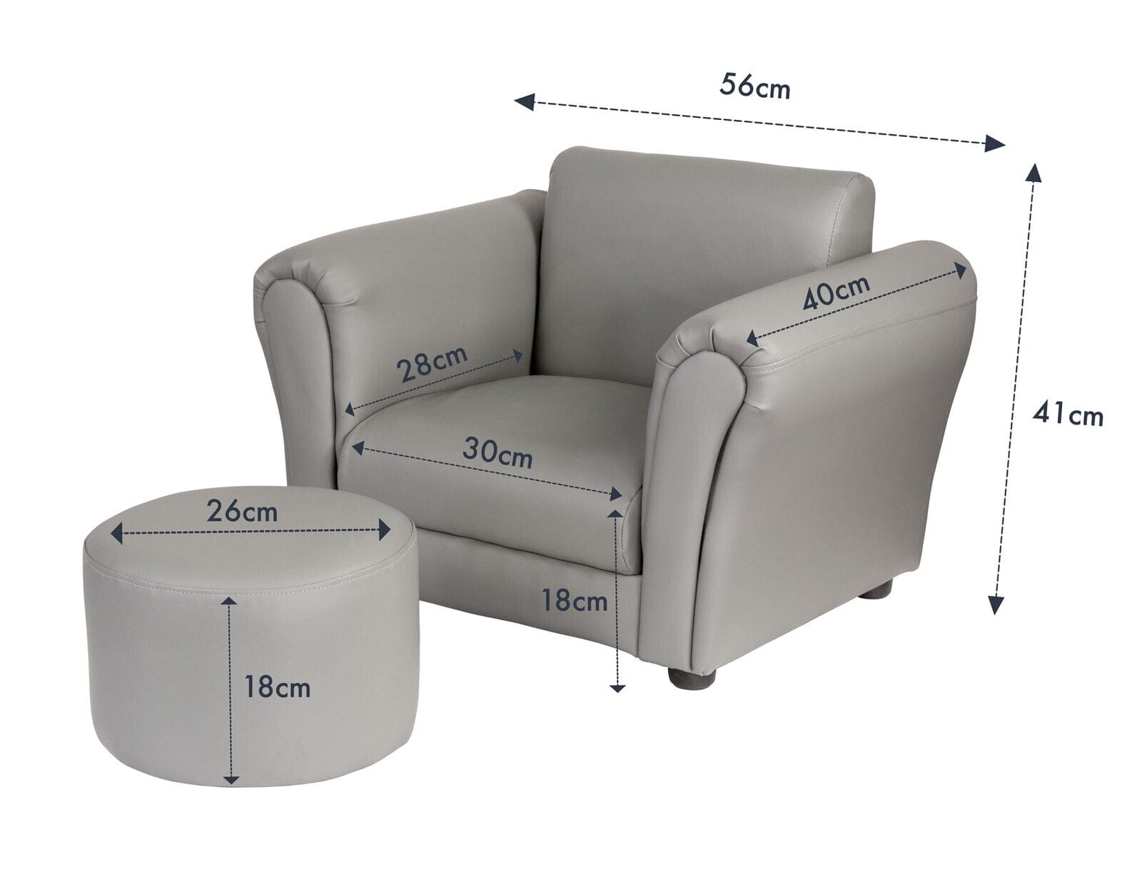 The Hacienda Kids Grey Couch Sofa Chair with Footstool in PU Leather offers a stylish and comfortable seating solution for your child's room or play area. Crafted with high-quality PU leather, this furniture set features a sleek grey color that complements any decor. The set includes a chair and a matching footstool, providing a cozy spot for your child to relax, read, or engage in imaginative play. With its sturdy construction and easy-to-clean upholstery, this compact and stylish set is a perfect addition to create a comfortable and inviting space for your little one. Elevate your child's seating experience with the Hacienda Kids Grey Couch Sofa Chair with Footstool in PU Leather.